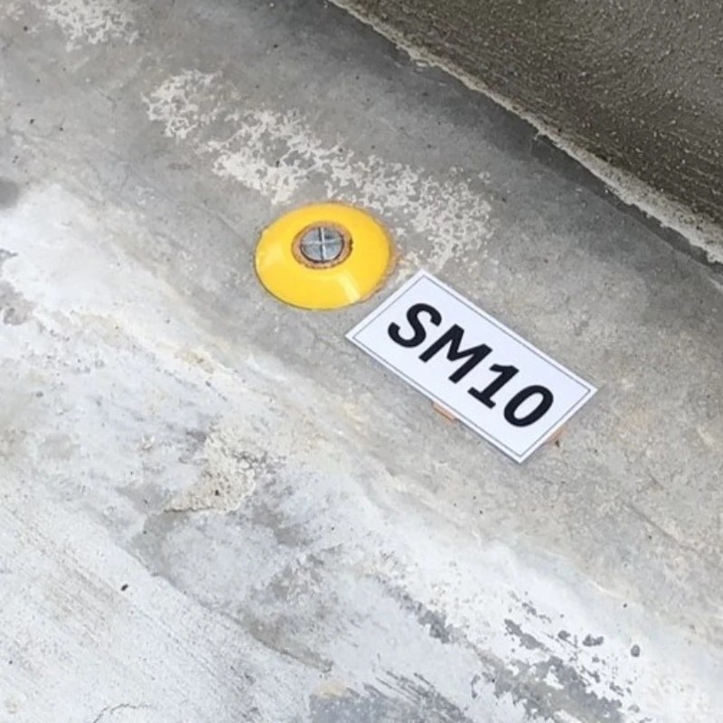 Settlement markers, which consist of the concrete nail and the painted locale marking, are installed, nailed, and labelled to the targeted objects as the point of measurements. Then, calibrated optical level with level staff are then used to measure the absolute level of each settlement marker in reference to the Benchmark (BMs) or Temporary Benchmarks (TBMs).